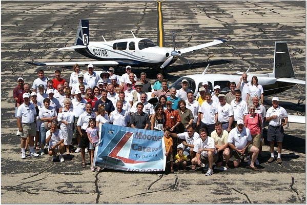 It was early 1998 when Akmal Khan innocently posted a note on the Mooney Mailing List asking if anyone else going to Oshkosh for the EAA convention wanted to explore the possibility of camping together. (Seehttp://lists.kjsl.com/mailman/listinfo/mooney for a link to the lists.) Jonathan Paul accepted the challenge and organized anad hoc group of Mooney owners to make the trip together. Madison was chosen as the marshaling site for the caravan due to its proximity to Oshkosh, its Class C airspace, and the South Ramp, location of a defunct FBO that offered copious parking for transient planes. Forty-one planes descended on an unsuspecting Madison in 1998 for the first edition of a new tradition. A special Letter of Agreement was negotiated with the FAA to allow for a group arrival, and arrangements were made with the EAA ground crews for handling. Things went so well that it was decided to repeat the exercise – again, and again, and again. The year 2000 was the high water mark for participation, with ninety-seven planes, after which the exhausted organizers decided to scale back the operation to maximize the fun while minimizing organizational hassles.